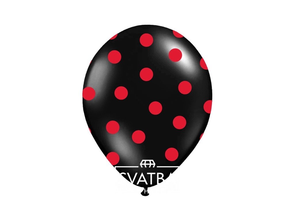 Kvalitní nafukovací balónky o průměru 33 cm černé barvy zdobené červenými puntíky. Balónky jsou vhodné na svatební výzdobu, rozlučku se svobodu, párty a pro různé oslavy.
