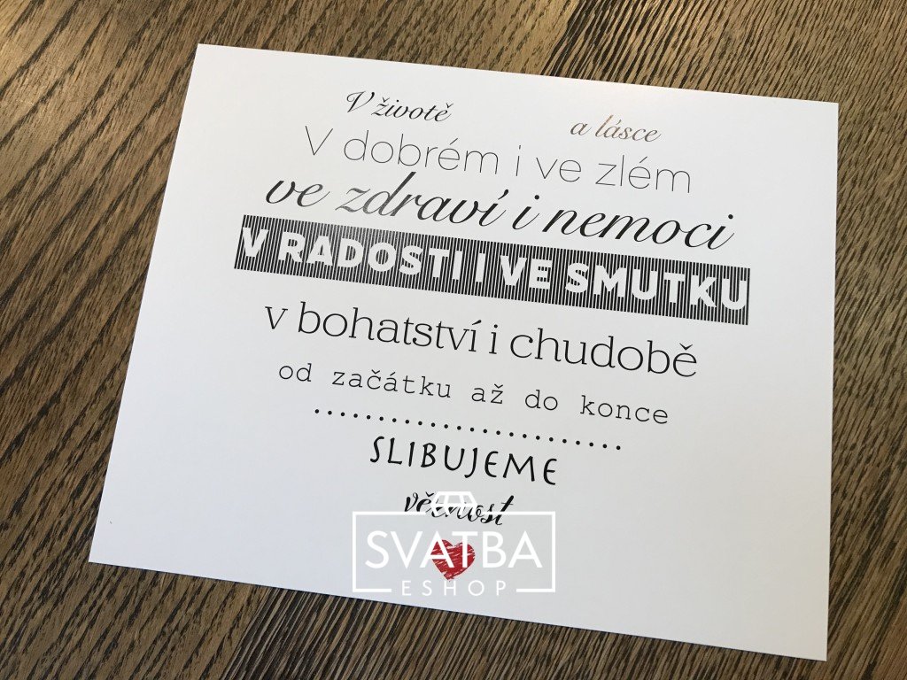 Cedulka se svatebními sliby do srdíčka s černým textem - cedulka na svatební výzdobu
