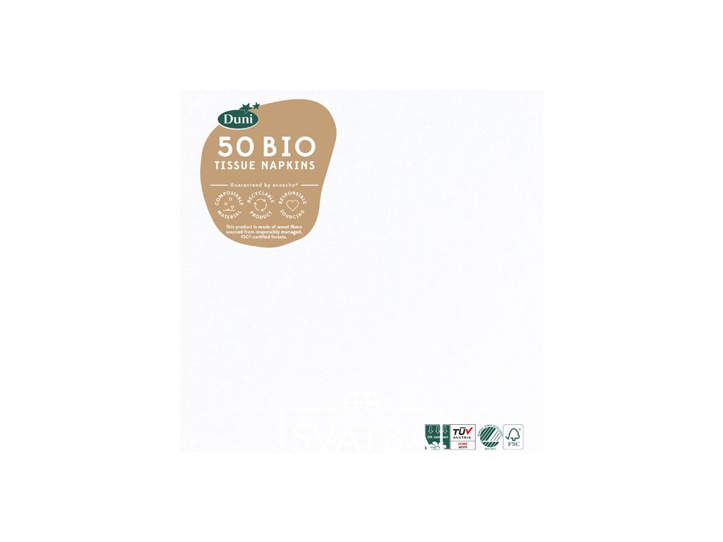 Kvalitní Duni třívrstvé papírové ubrousky bílé barvy.