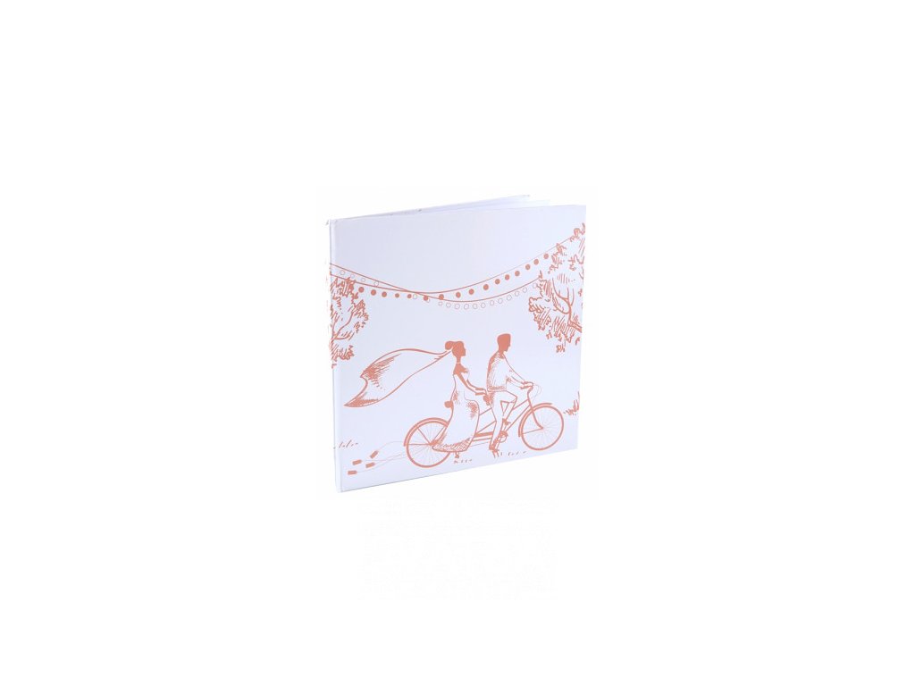Kniha hostů novomanželé na dvojkole růžovozlatá 24 x 24 cm 20 listů