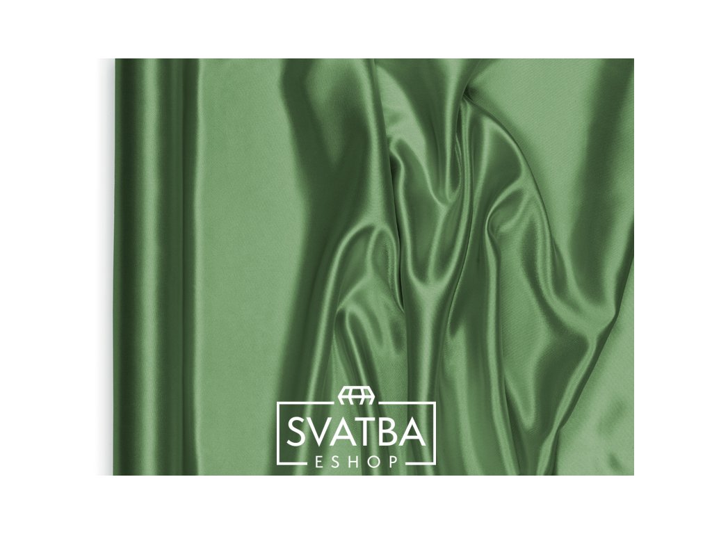 Satén olivové zelené barvy je dekorační textilie vhodná jako středová šerpa či běhoun k výzdobě svatební tabule. Díky svému lesku satén propůjčuje tabuli slavnostní a elegantní vzhled. Satén je neprůhledná textilie a tak není třeba jej řasit.